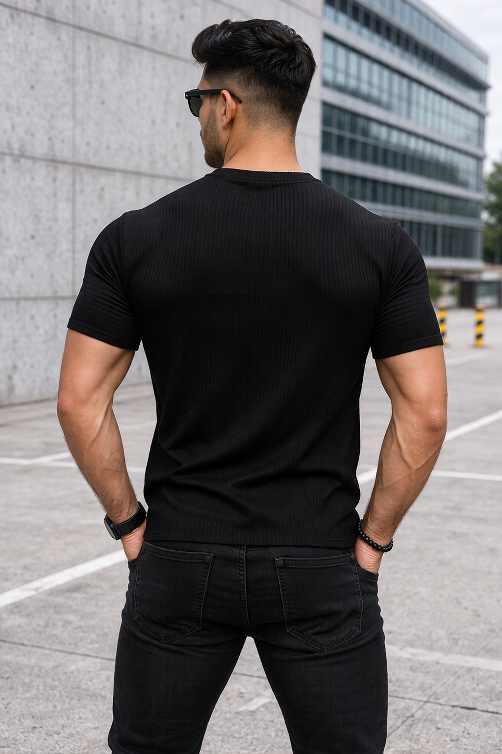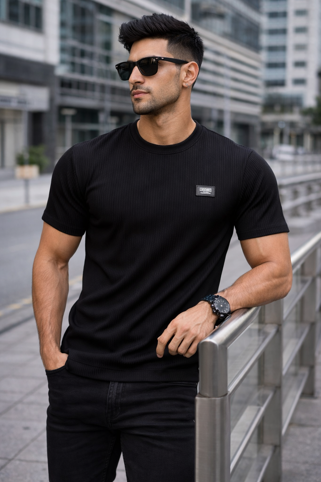 Elevate your everyday style with the Arospar Premium Ribbed Texture Black T-Shirt, crafted for a bold and modern look. Made from high-quality stretchable fabric, this t-shirt features a finely detailed ribbed texture that gives it a rich and premium finish.