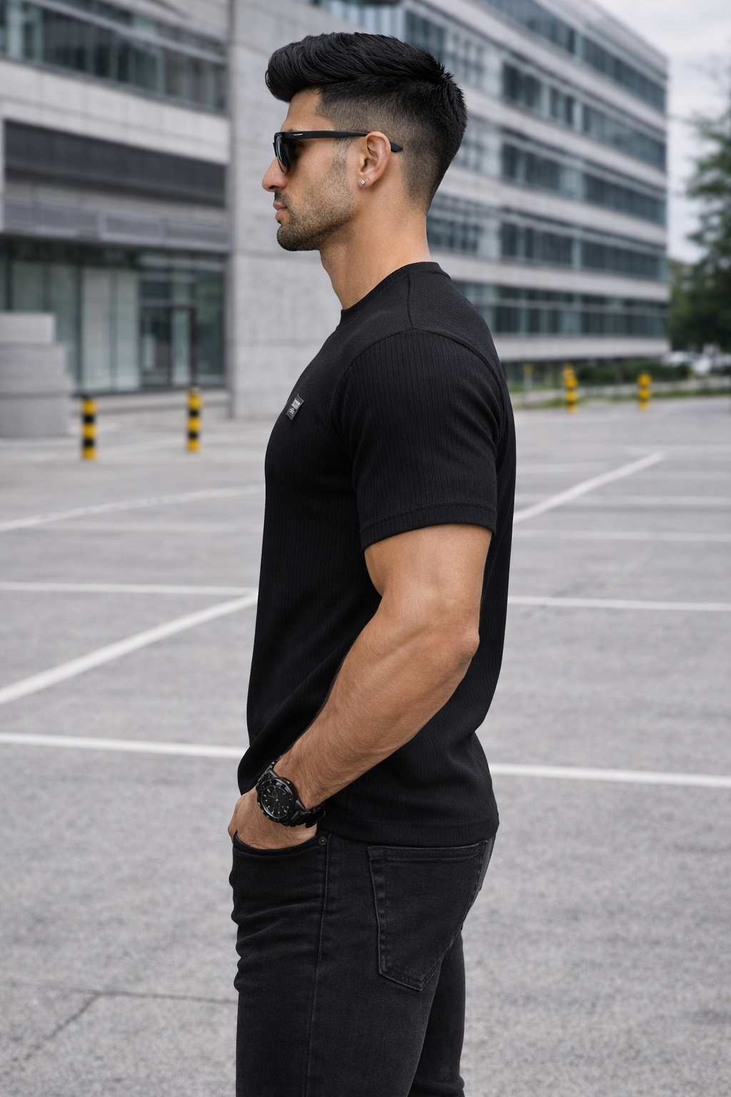 The slim-fit design enhances your physique, making it perfect for casual outings, streetwear styling, or daily wear. The classic black color adds a timeless and versatile touch, allowing easy pairing with jeans or trousers. Its breathable and lightweight material ensures maximum comfort throughout the day.