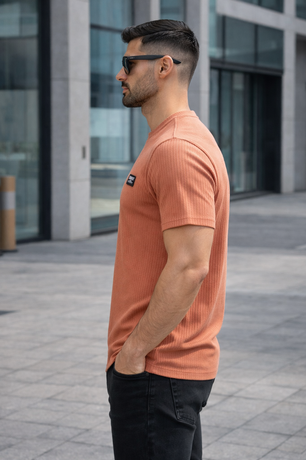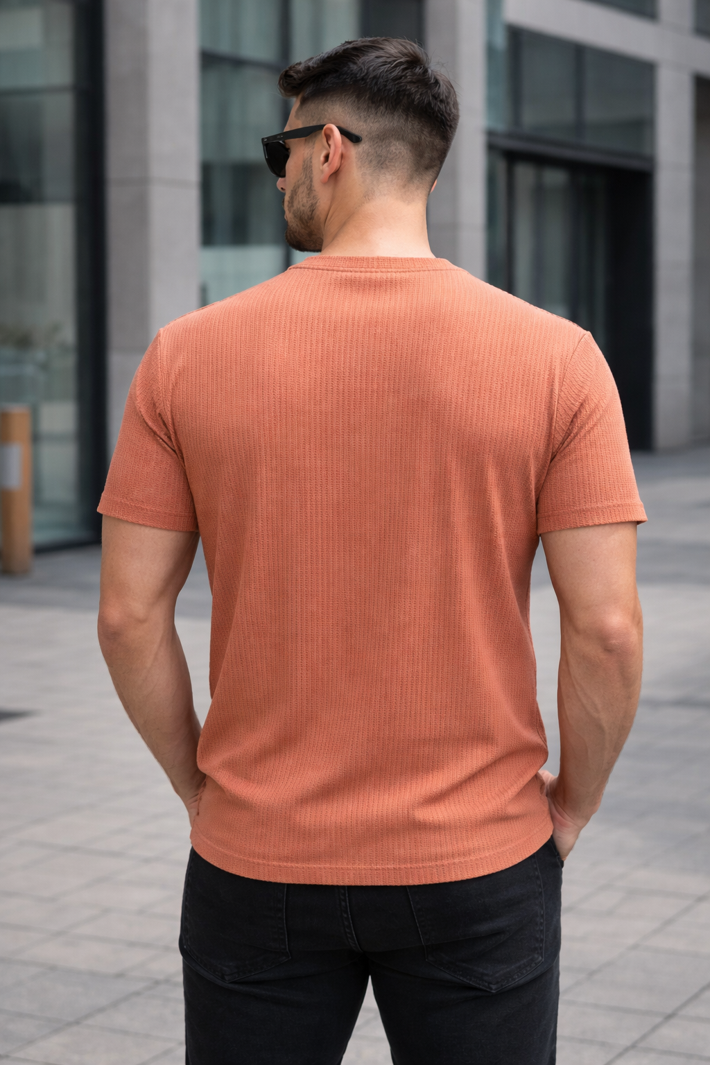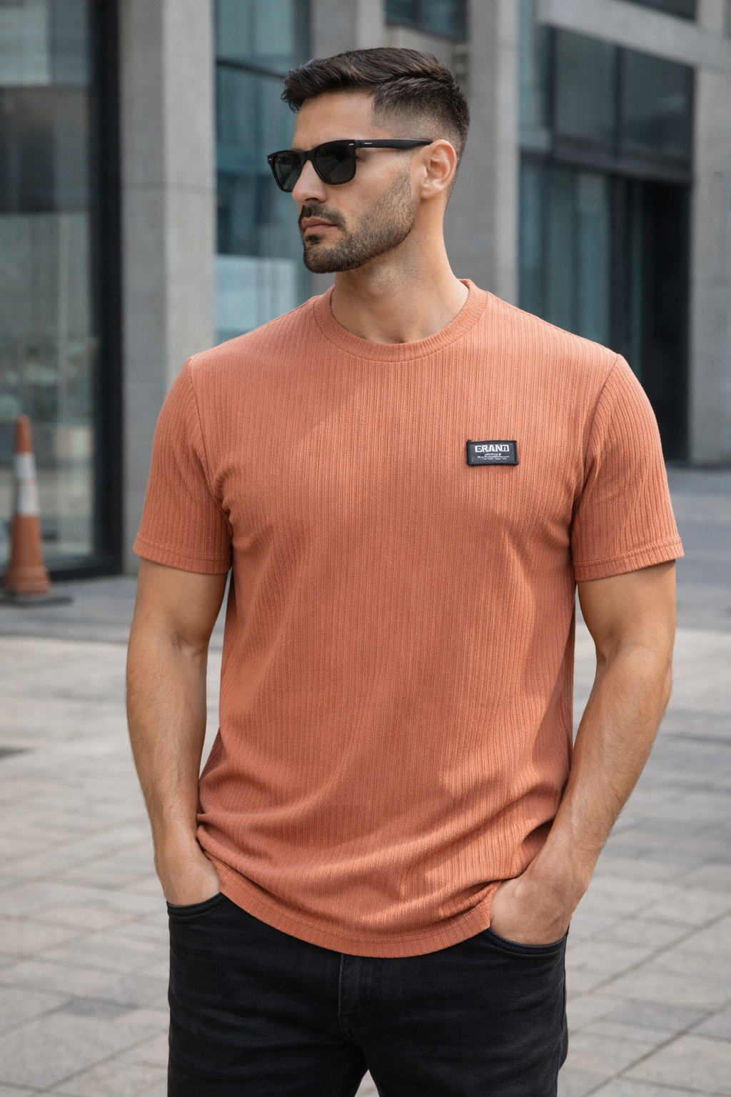 Elevate your everyday style with this premium ribbed textured t-shirt from Arospar (Defined by Quality). Designed in a modern peach tone, this t-shirt offers a perfect balance of subtle color and sharp styling. The high-definition ribbed fabric enhances texture visibility while ensuring superior comfort. Ideal for casual outings, streetwear, and smart everyday looks.