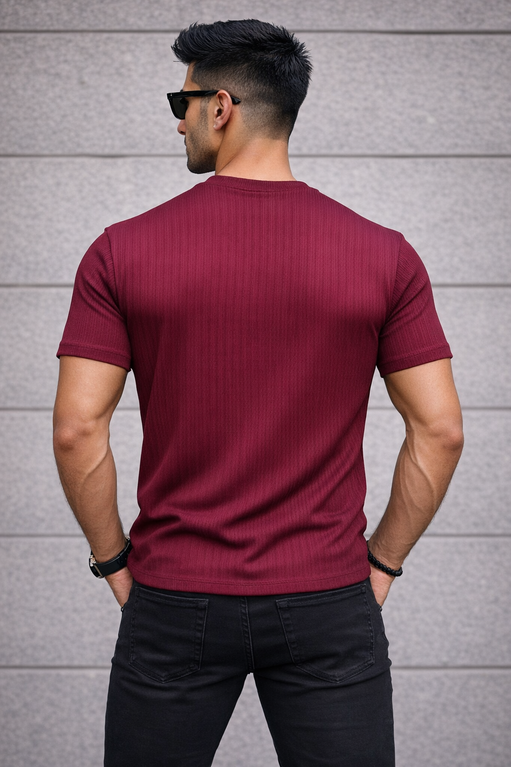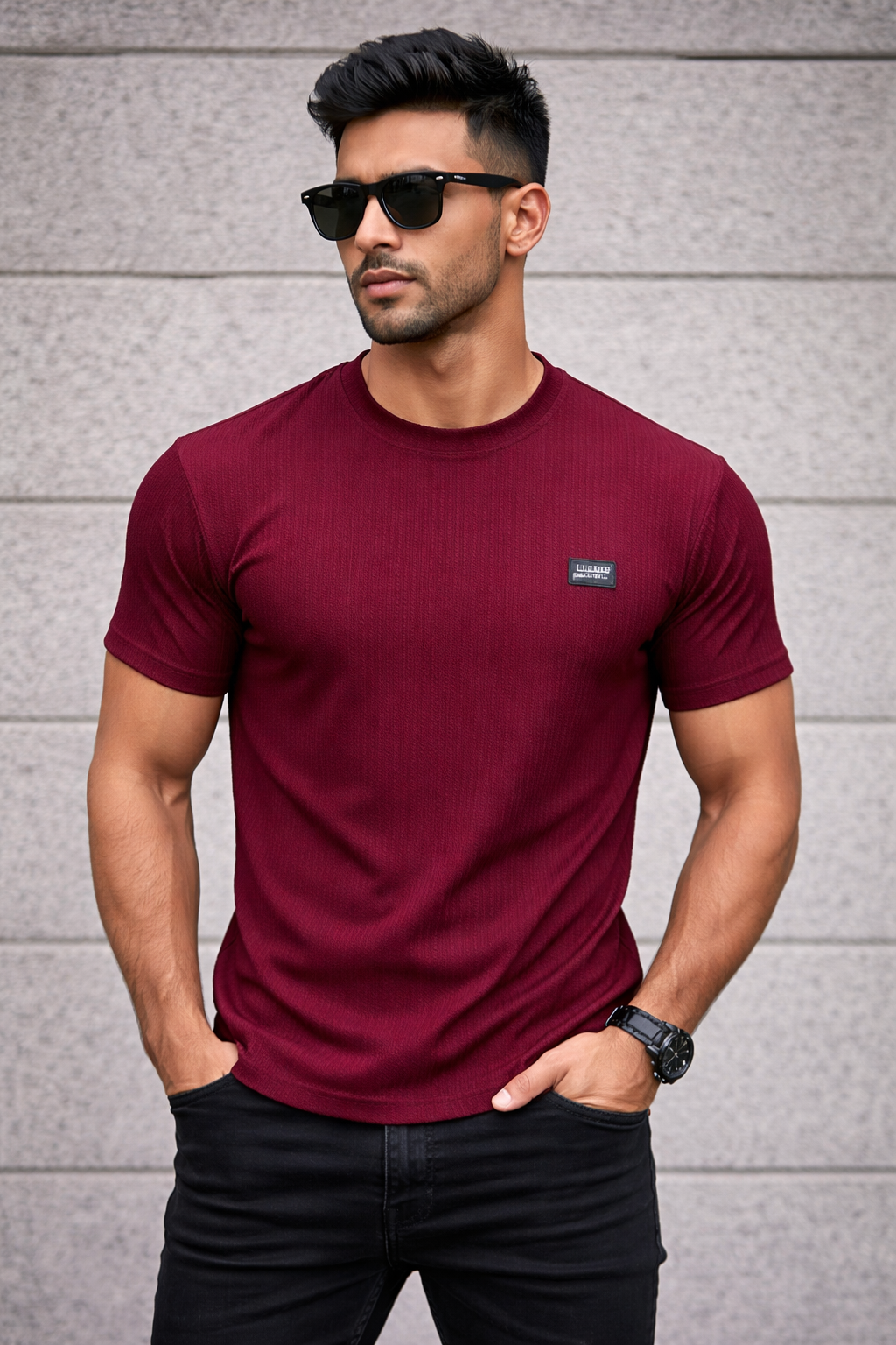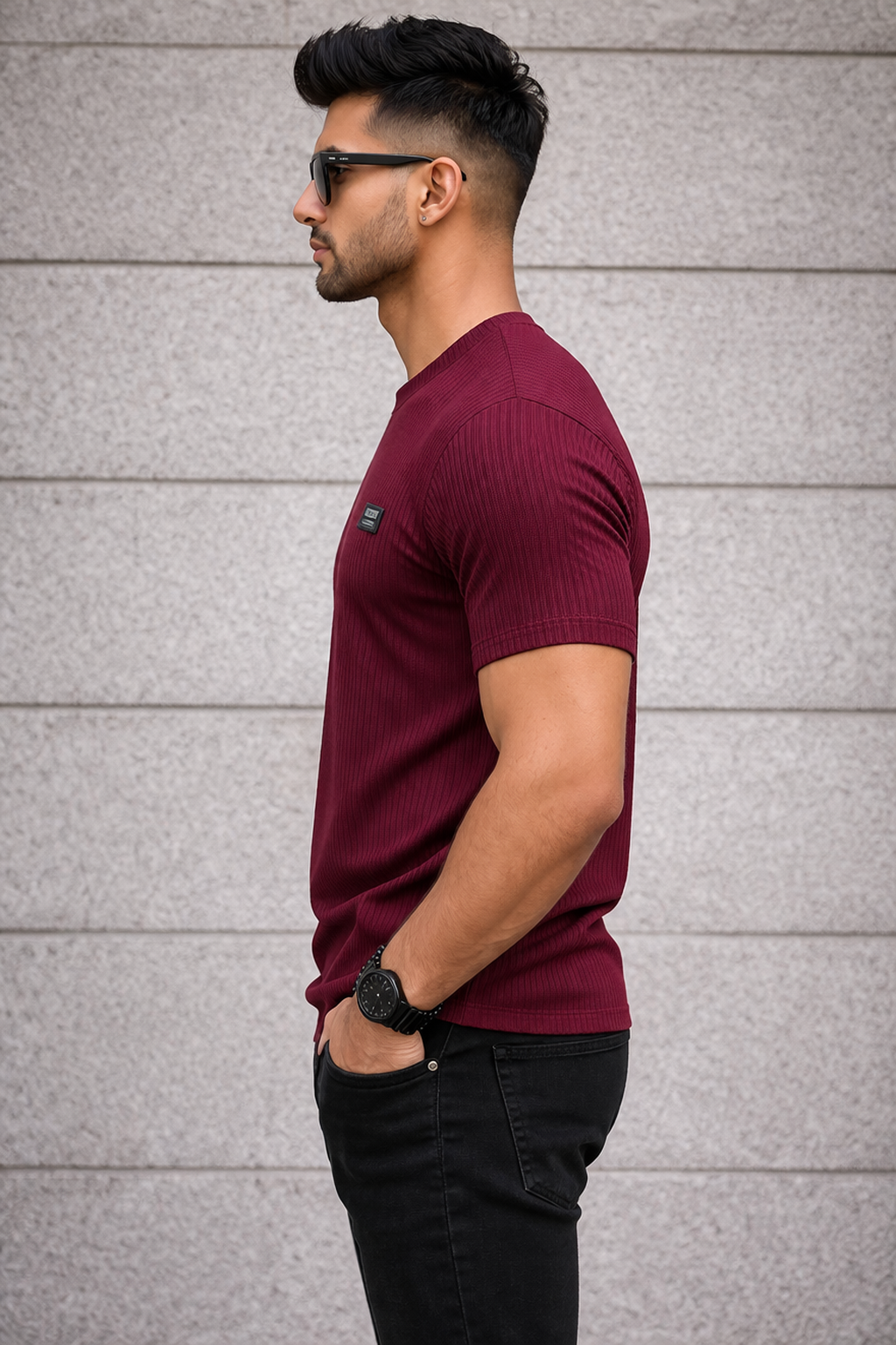 Upgrade your wardrobe with the Arospar Premium Ribbed Texture Wine T-Shirt, designed for those who prefer a sharp and modern look. Made with high-quality stretchable fabric, this t-shirt features a detailed ribbed texture that gives it a rich and premium feel.
